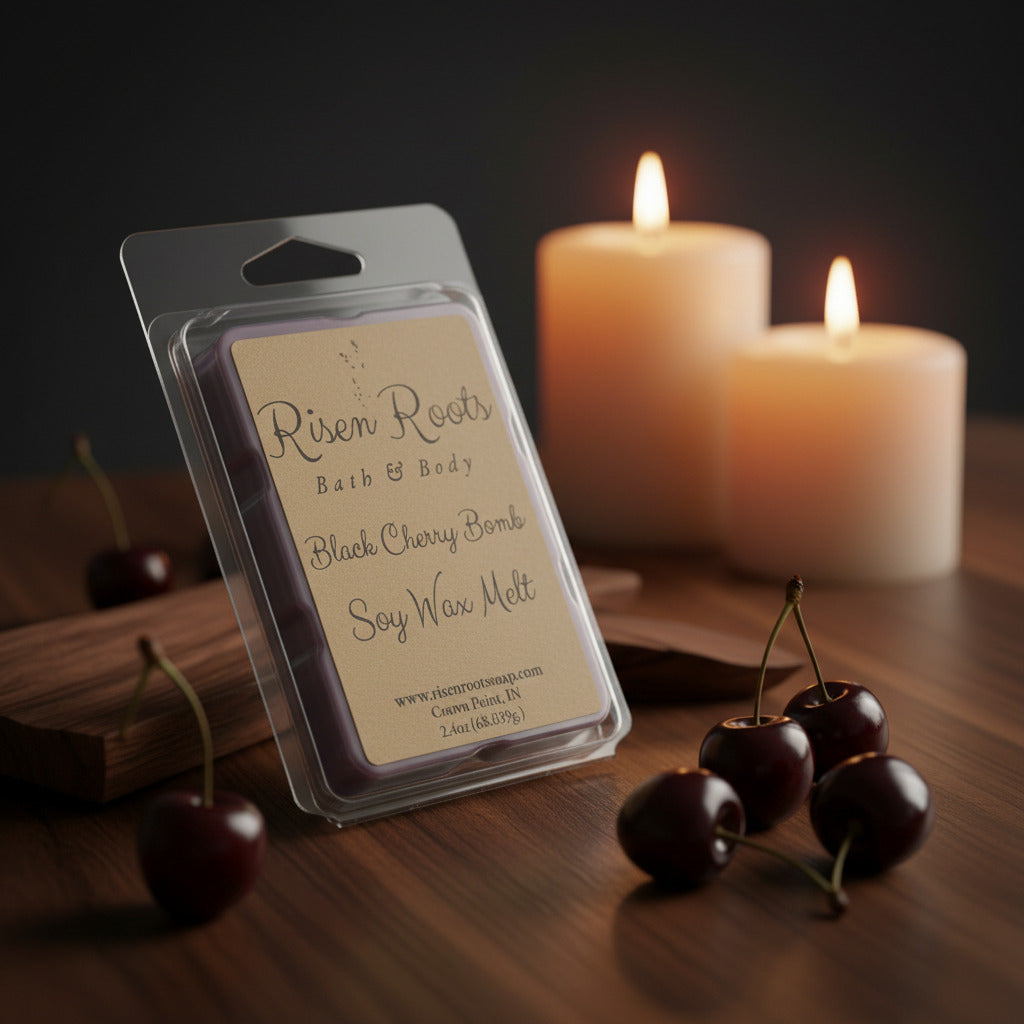 Black Cherry Bomb soy wax melts delivers a bold, fruity fragrance that fills your space with the rich aroma of ripe black cherries that is not too sickening sweet. This bold, strong scent is definitely a fan favorite.