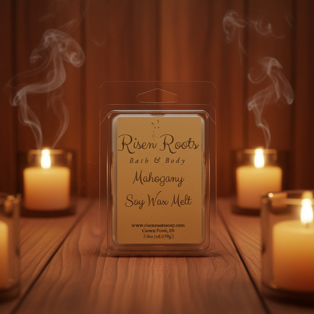 Mahogany soy wax melts deliver a sophisticated, woody fragrance that transforms any room into a warm sanctuary. With the smell of earthy, wood accompanied with the scent of fresh fruit and flowers from a nearby field.